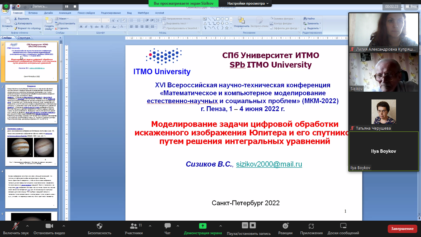 1-4 июня 2022 года на кафедре Высшая и прикладная математика факультета вычислительной техники Политехнического института Пензенского государственного университета состоялась XVI Всероссийская с международным участием научно-техническая конференция «Математическое и компьютерное моделирование естественно-научных и социальных проблем» (МКМ−2022). Вид конференции – научно-техническая.