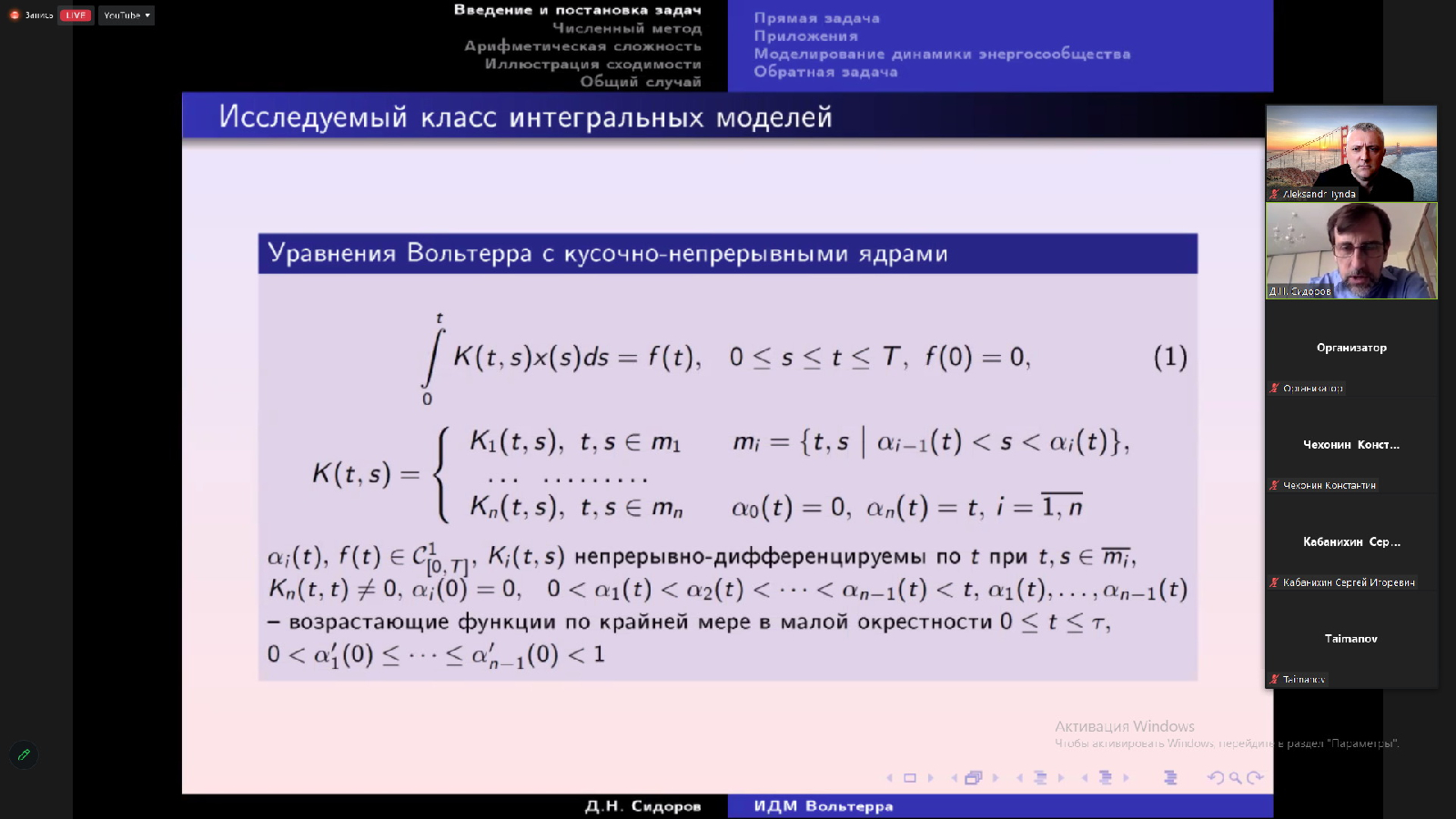 Тема заседания семинара: "Интегральные динамические модели: теория и приложения в электроэнергетике"