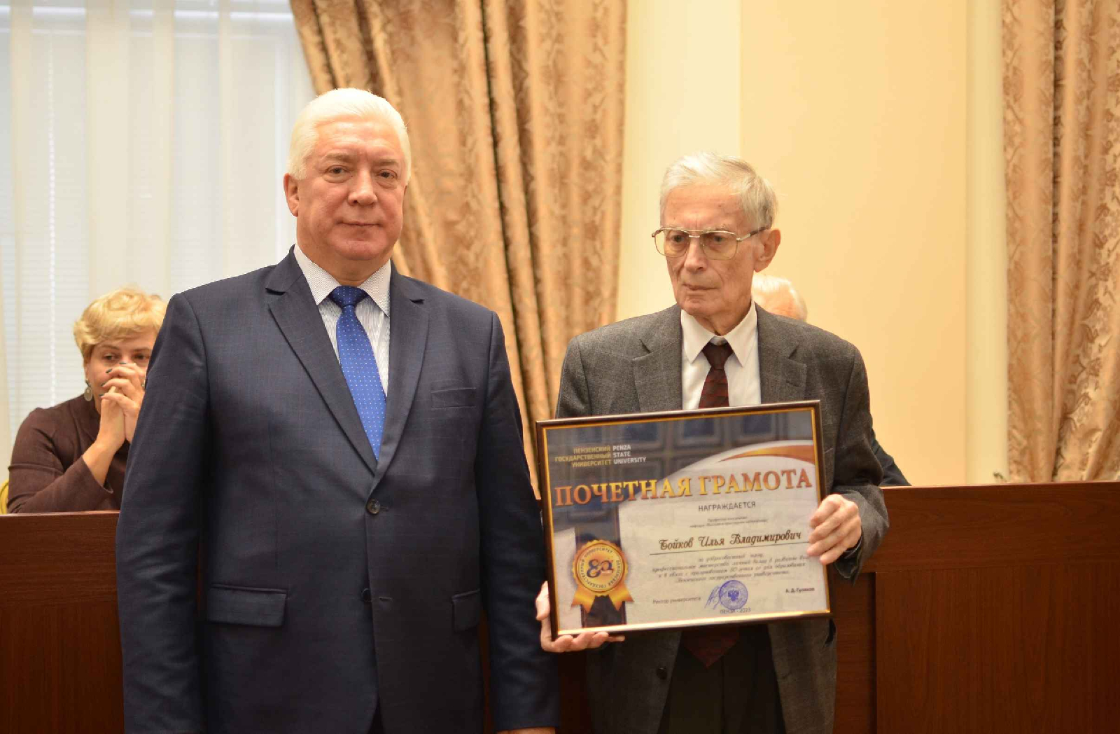 За добросовестный труд, профессиональное мастерство, личный вклад в развитие вуза и в связи с празднованием 80-летия со дня образования Пензенского государственного университета Почетной грамотой ректора награжден профессор-консультант кафедры «Высшая и прикладная математика» Бойков Илья Владимирович.