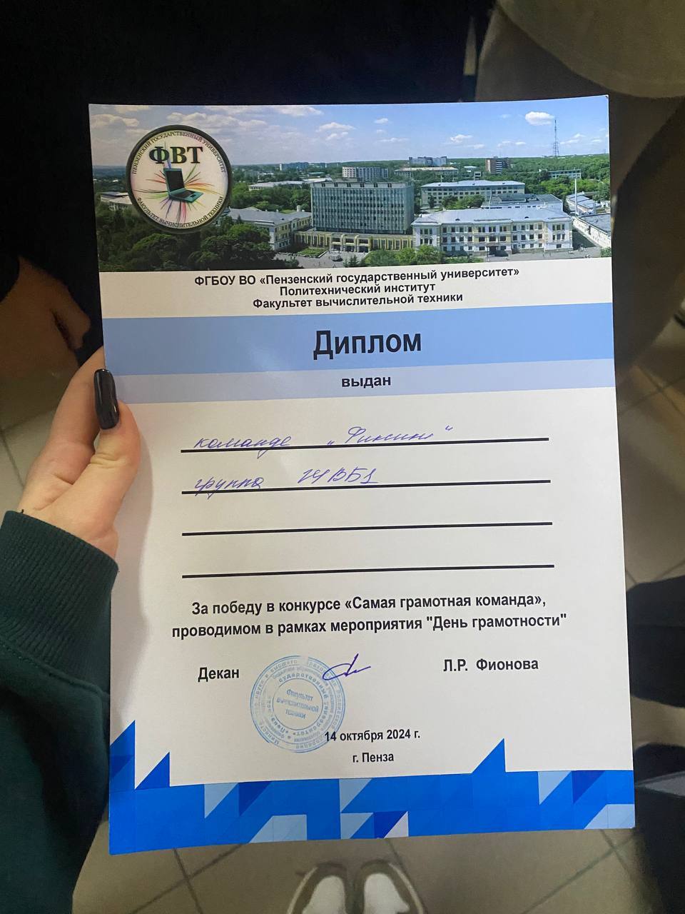 Сегодня, 14 октября 2024 года, на факультете вычислительной техники Пензенского государственного университета прошел этап ежегодного мероприятия «День грамотности». По традиции в нем приняли участие студенты первого курса, команды которых стремились одержать победу за звание «Самая грамотная группа ФВТ».
